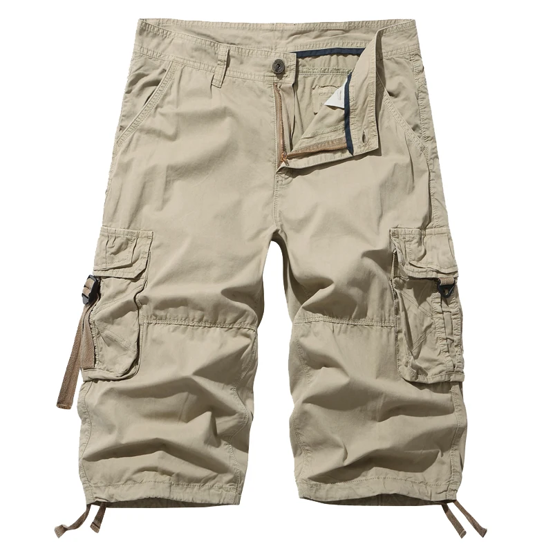 New style Cotton Below Knee Length 3/4 Long Shorts Men's Tactical Capri Pants Multi Pocket Summer Twill Work Cargo Pants Man